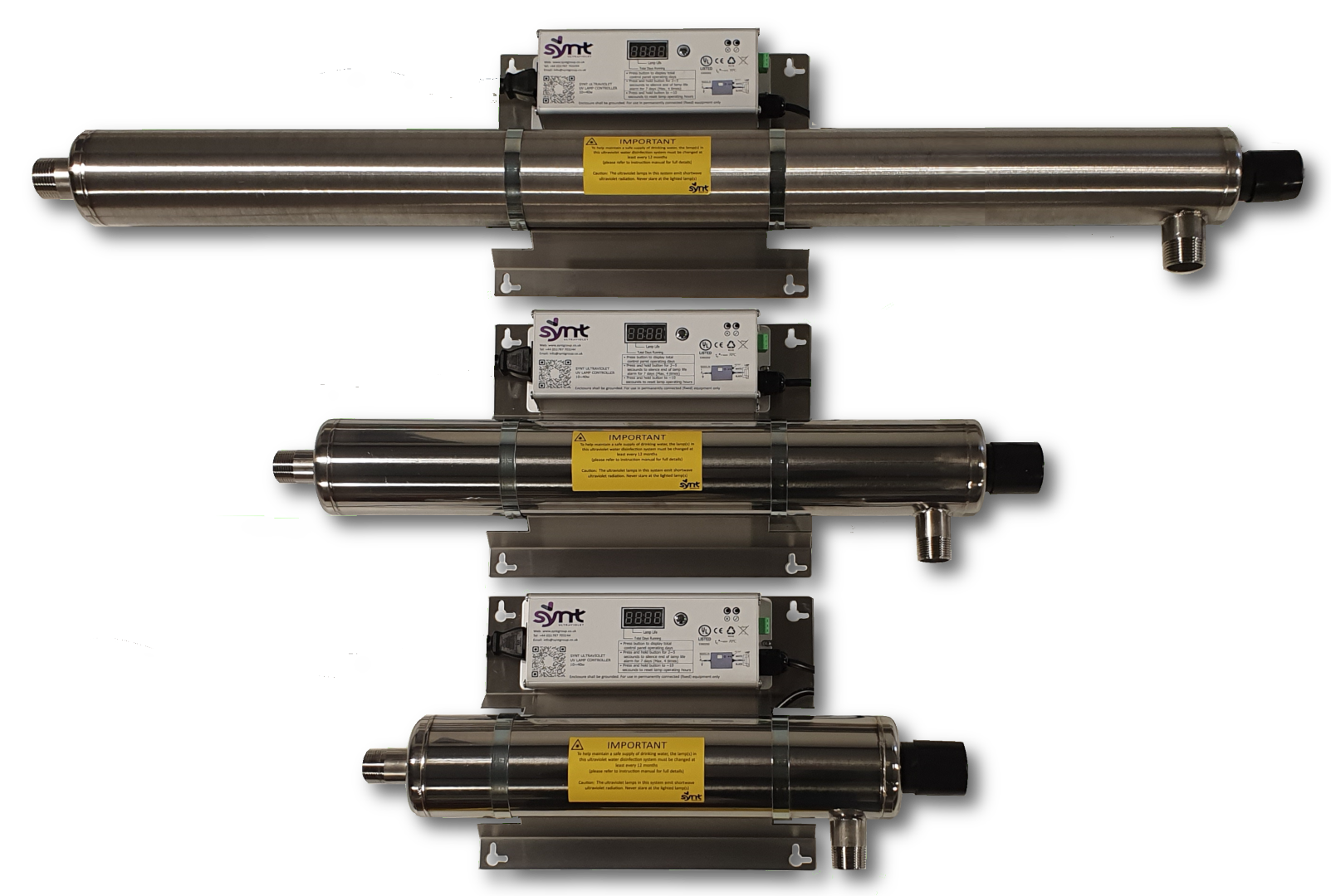 We currently manufacture and stock a range of UV systems, ranging from systems for a single outlet, whole house domestic systems to large industrial systems. All of our systems are manufactured in our factories in Suffolk UK.